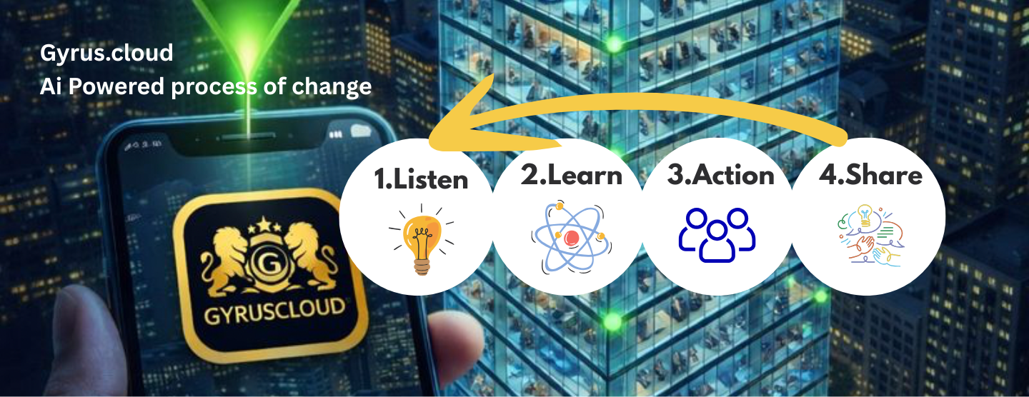 Gyrus.cloud TM Enterprise is a suite of communication and engagement tools to help reduce risks and increase efficiencies by creating co-design change in the workplace using Ai mobile power.